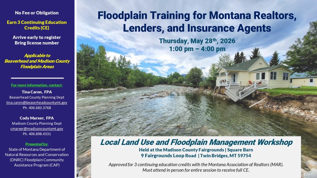Floodplain Training for Montana Realtors, Lenders and Insurance Agents Apr 28, 2026 | News Floodplain Training for Montana Realtors, Lenders, and Insurance Agents